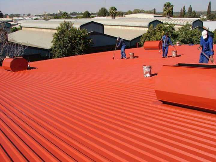 Industrial roof waterproofing contractors sealing a roof